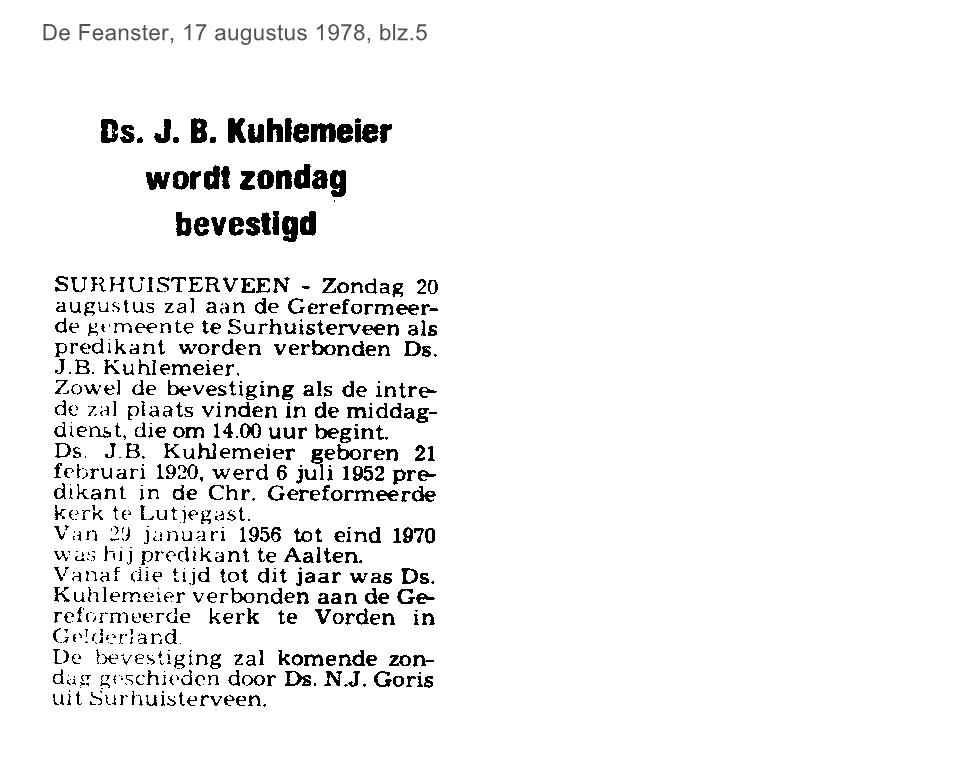 | Kuhlemeier, ds. J.B. doet intrede in Geref. Kerk | augustus | 1978 17-08 a |