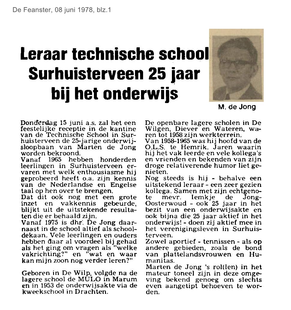 | Jong, Marten de - 25 jaar leerkracht Lagere Technische School | juni | 1978 08-06 |