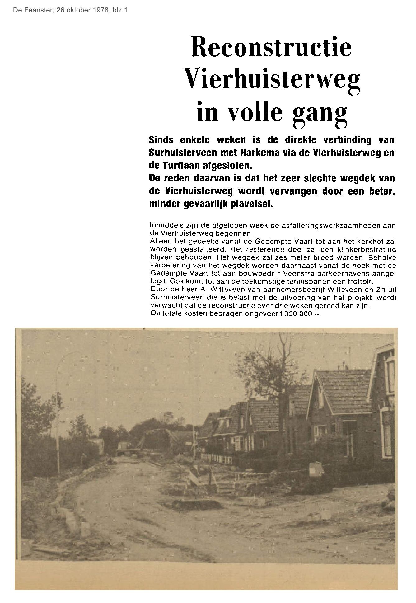 | Reconstructie Vierhuisterweg in volle gang | oktober | 1978 26-10 |