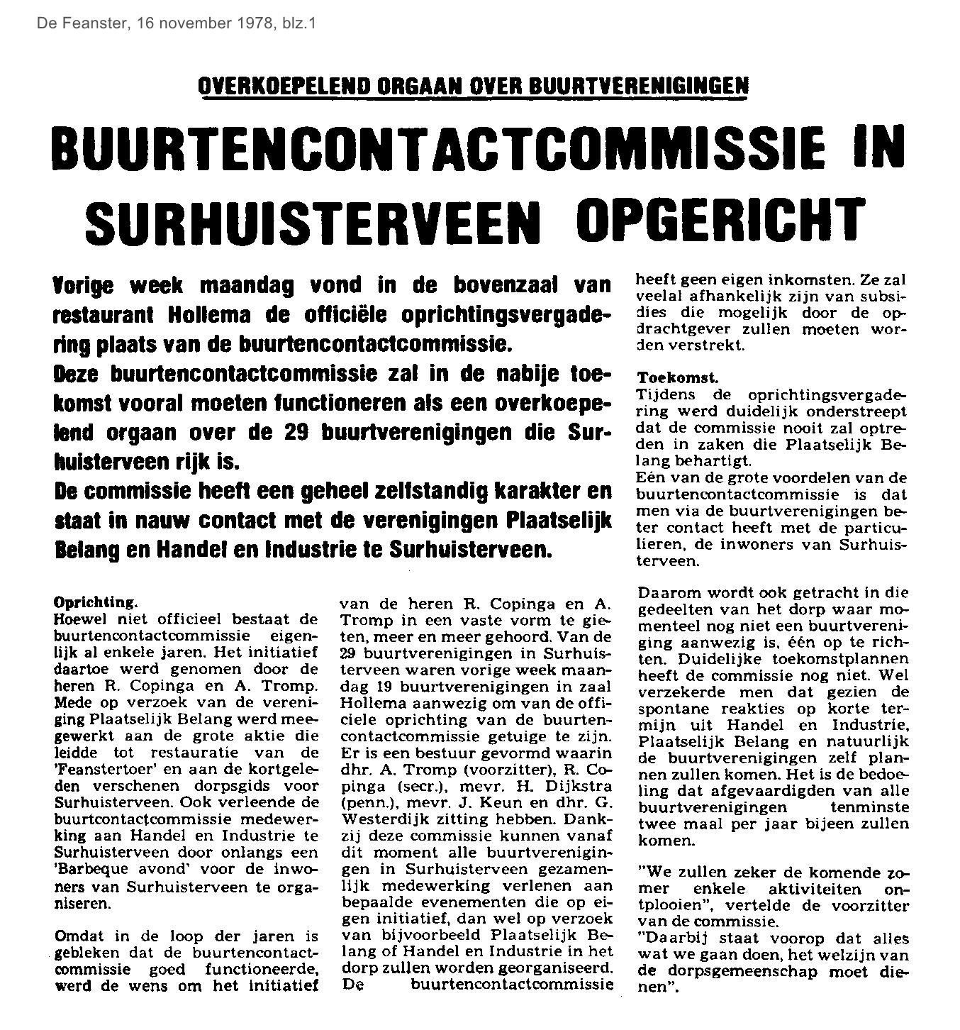 | Buurten contact commissie opgericht | november | 1978 16-11 |
