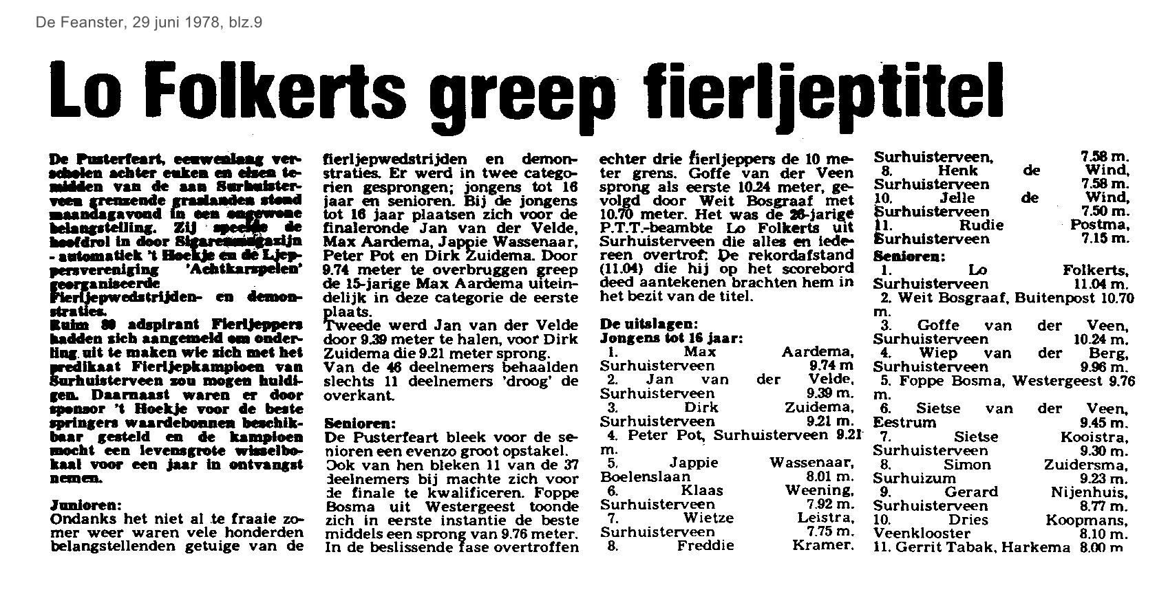 | Folkerts, LO - grijpt fierljeptitel | juni | 1978 29-06 |