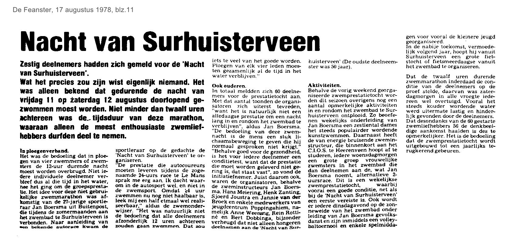 | Zwembad - foto ‘ nacht van Surhuisterveen ‘ | augustus | 1978 27-08 |