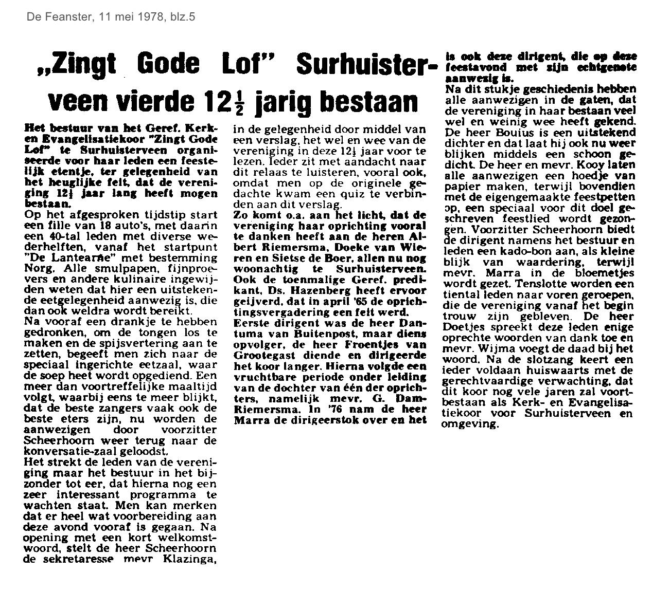 | Zangvereniging Zingt Gode Lof 12 ½ jaar - foto | mei | 1978 15-06 |