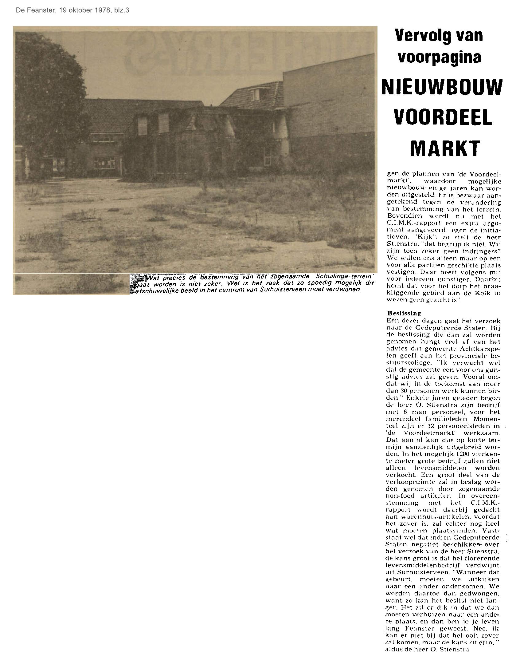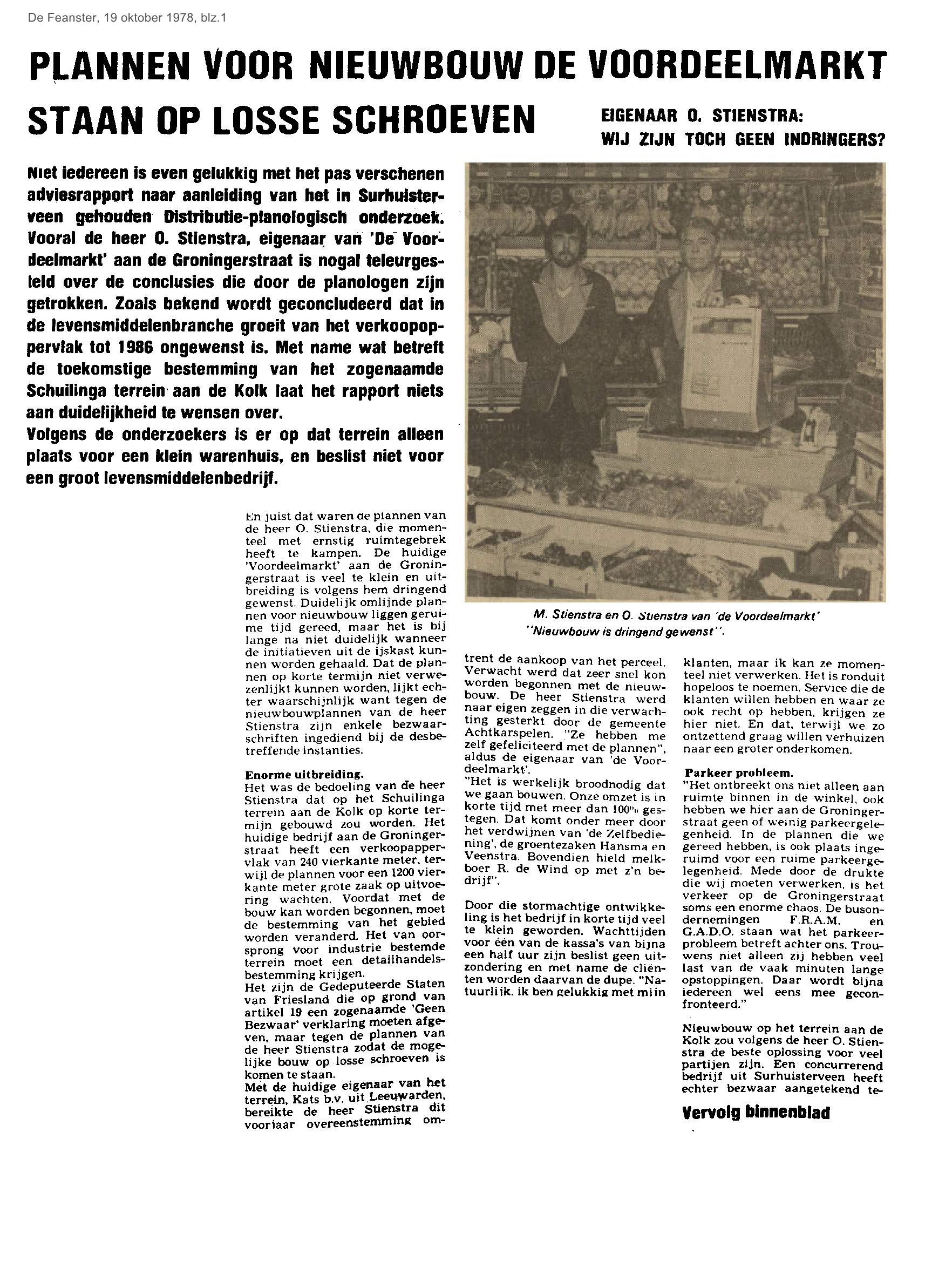 | Supermarkt Voordeelmarkt - nieuwbouwplannen op losse schroeven | oktober | 1978 19-10 a 1978 19-10 b |