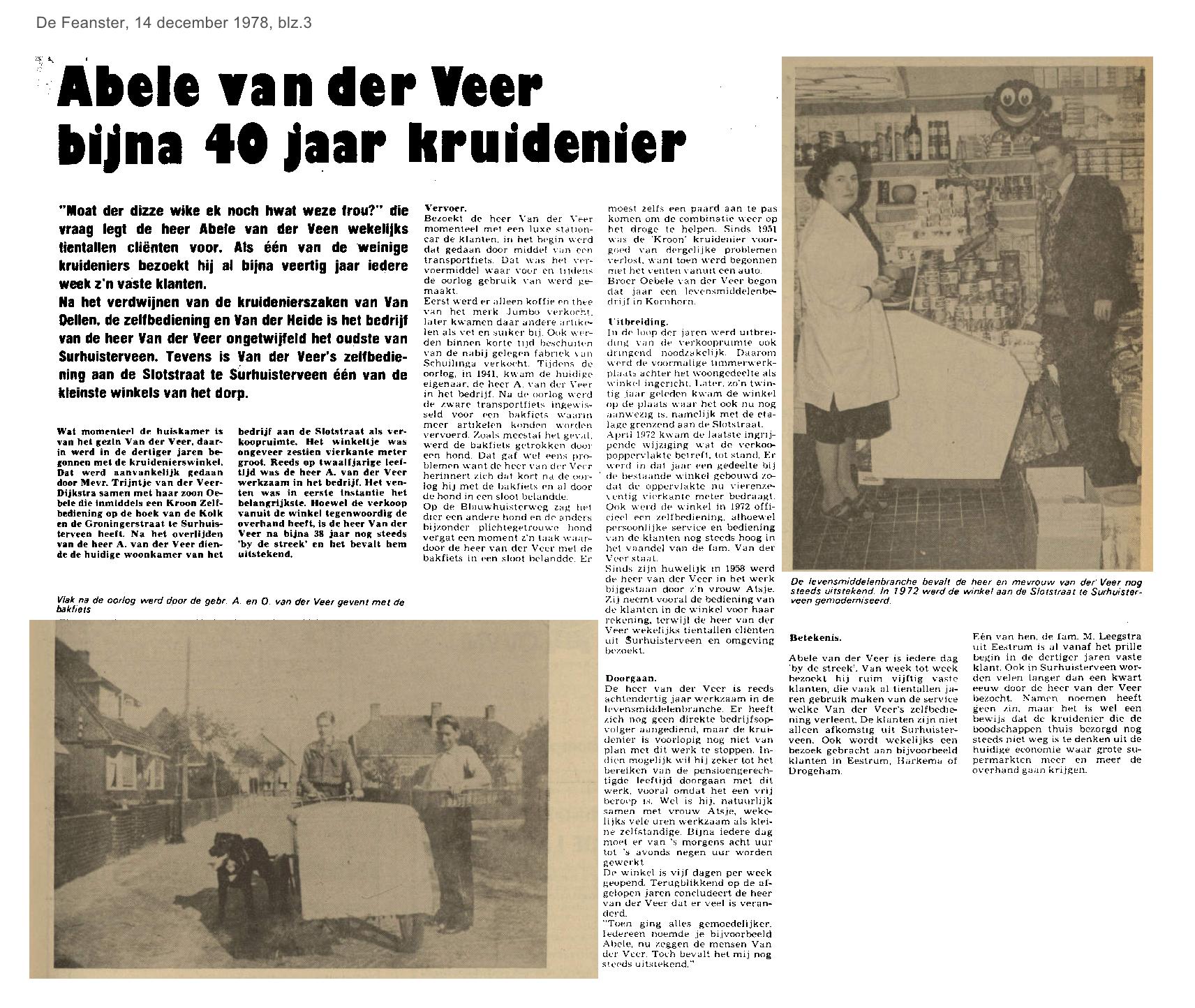| Veer, Abele van der - 40 jaar kruidenier | december | 1978 14-12 b |