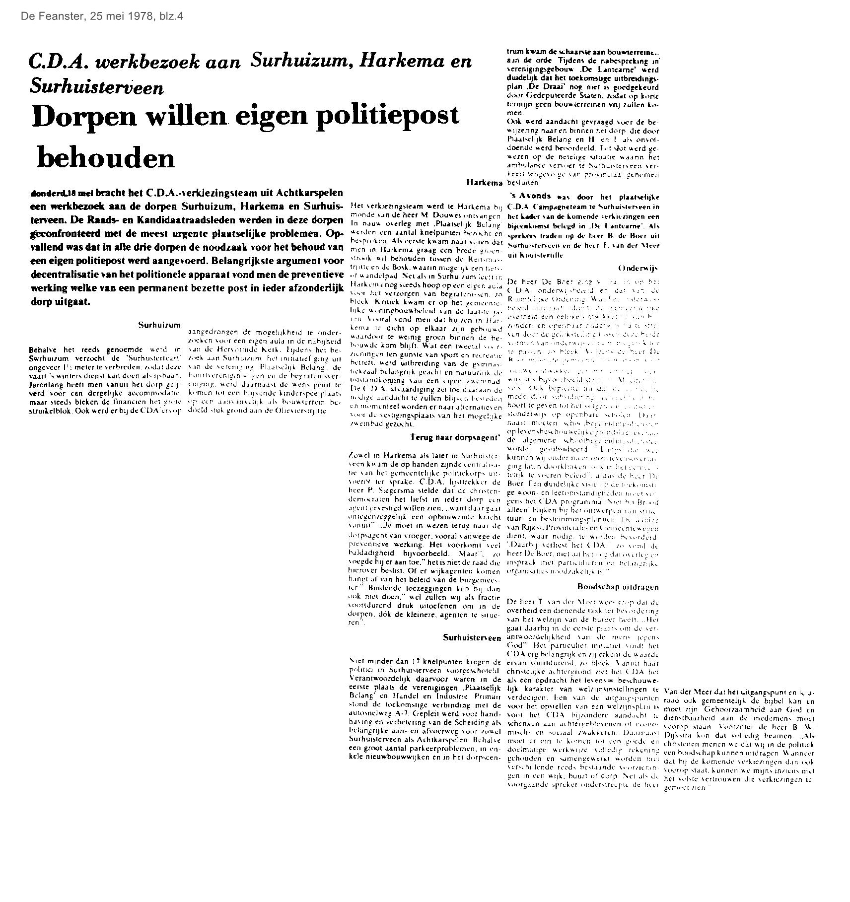 | Politieposten moeten blijven in Surhuisterveen en andere dorpen | mei | 1978 25-05 |