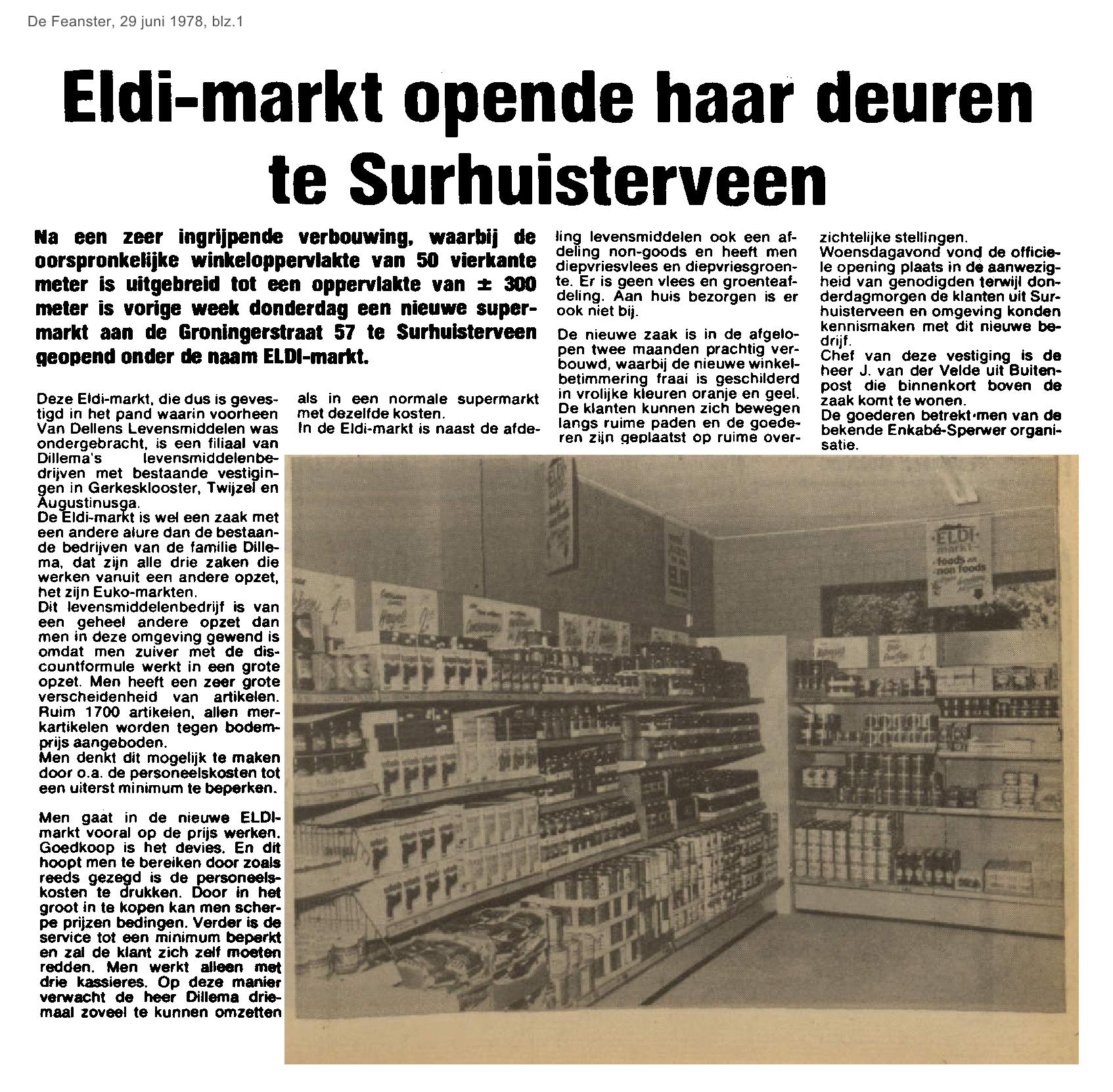 | Supermarkt ELDI geopend aan Gron.straat | juni | 1978 22-06 a 1978 29-06 a |