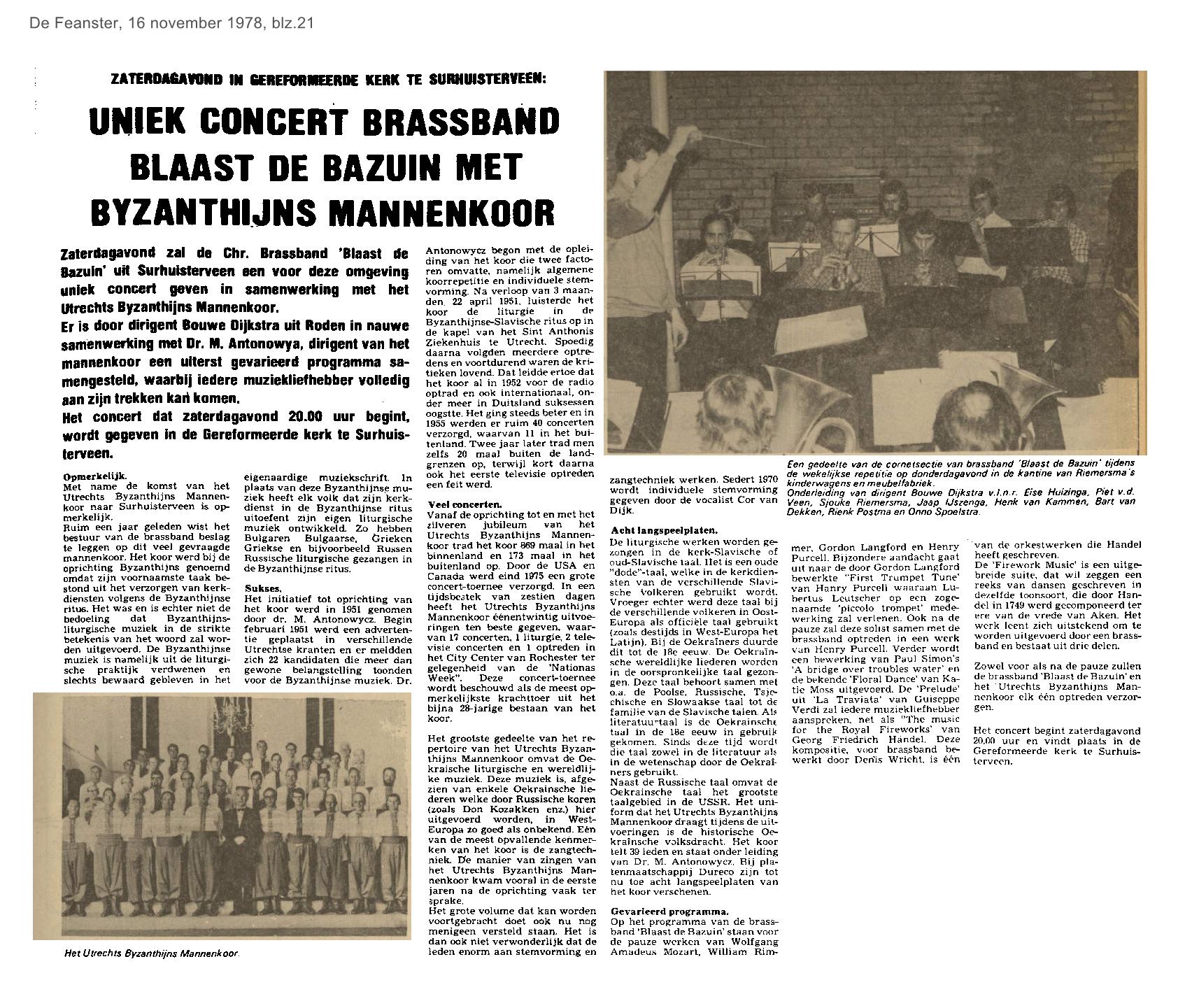 | Muziekvereniging Blaast de Bazuin geeft uniek concert | ||