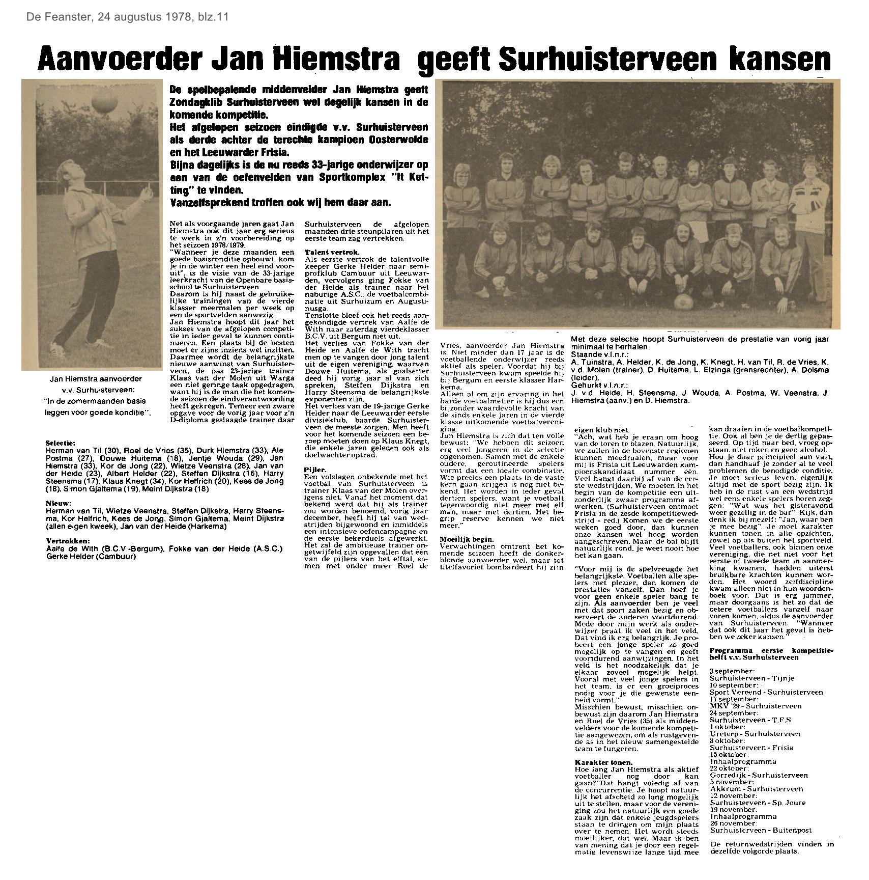 | Voetbalvereniging vv Surhuisterveen - heeft kansen | augustus | 1978 24-08 |