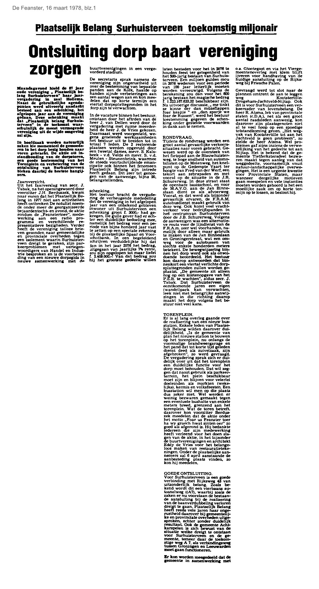 ARCHIEF PLAATSELIJK BELANG - SURHUISTERVEEN