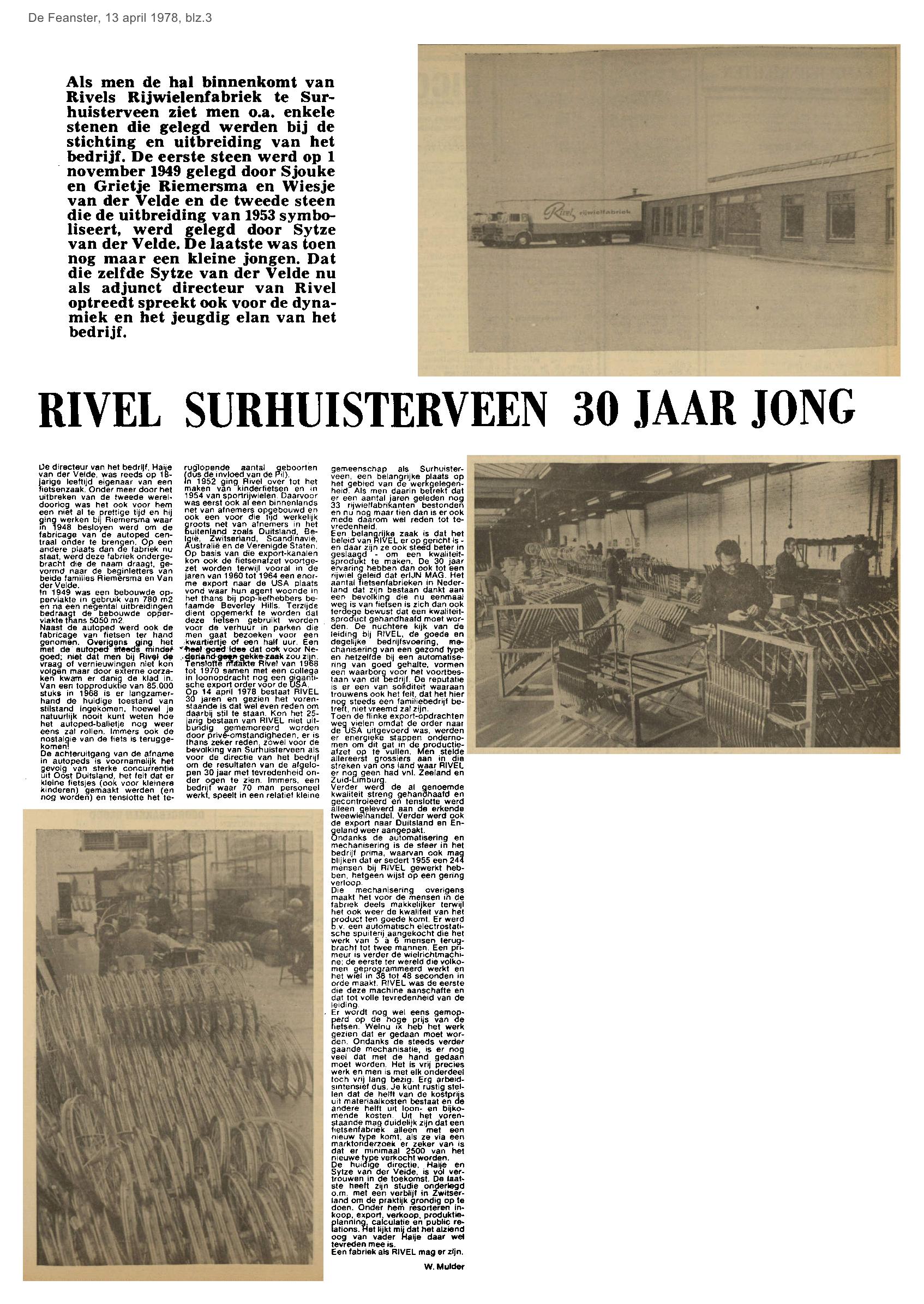 | RIVEL rijwielen - 40 jaar | april | 1978 13-04 a |