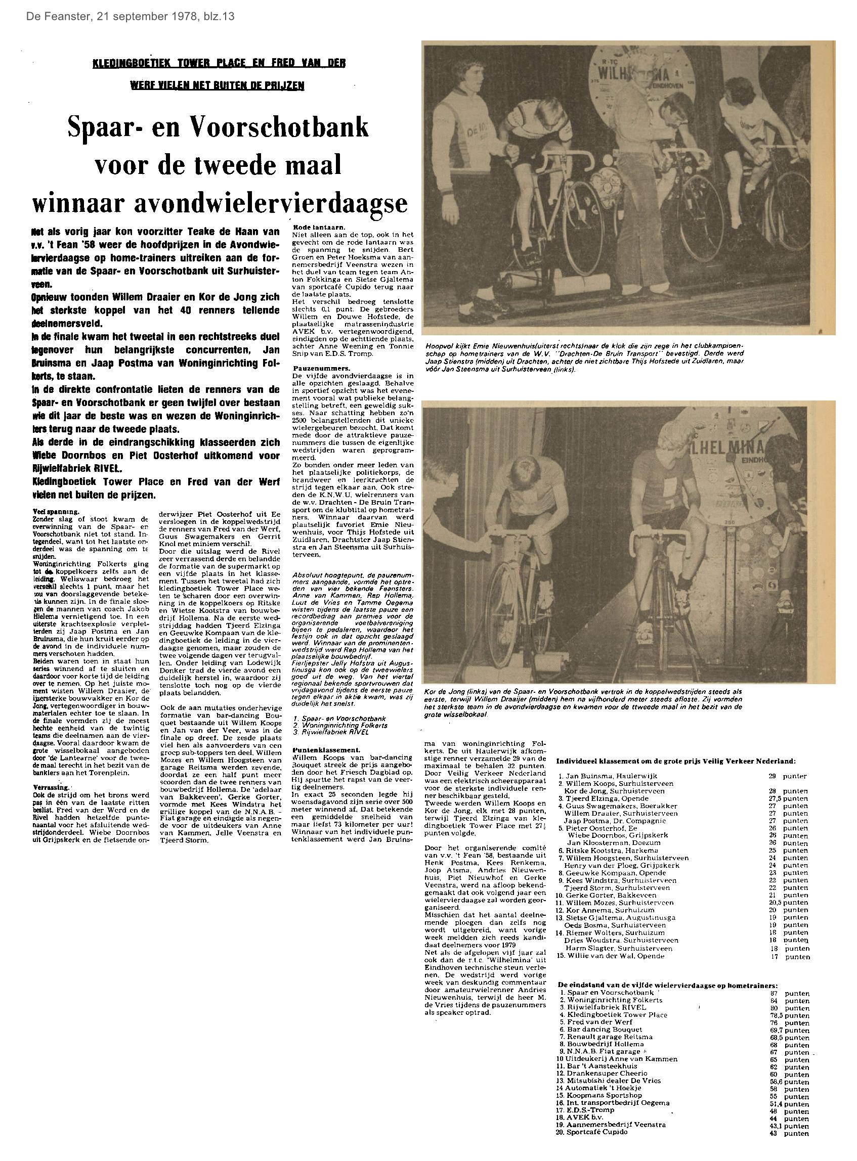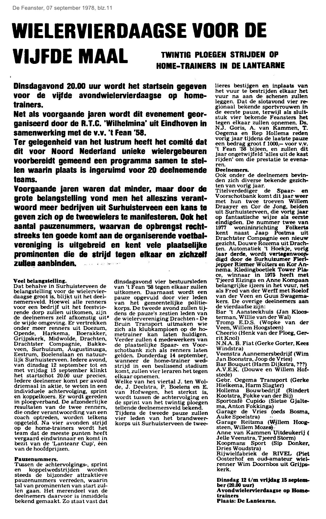 | Wielerspaktakel Wielervierdaagse op HOMEtrainers | september | 1978 07-09 a 1978 21-09 |